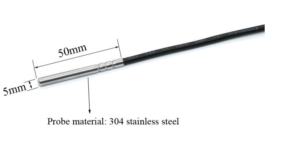 3-tråds PT 100 givare i metallhus ø5 x 50 mm, - 50 – +100°C, 3 meter kabel