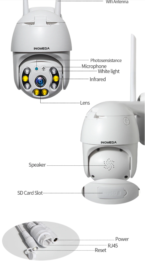 Kan spela in EMD SD-kort så att ingen NVR eller DVR behövs. Kan anslutas via WiFi eller kabel RJ45.
