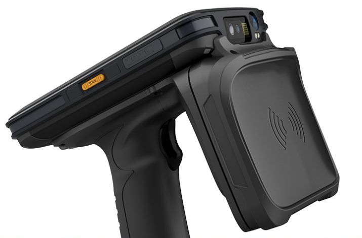 UHF RFID, NFC, Mifare, 1D/2D/QR streckkodsläsare. Wifi, Bluetooth, 4G LTE, GPS. 2 Watt UHF-sändareffekt. 13 MP kamera.