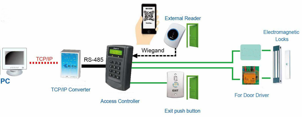 Den kan anslutas till offline och online åtkomstkontroll. Skanna QR-koden för att registrera åtkomstbehörighet. Inbyggd summer för ljudavisering. Används med EM-Marin-kort / QR-kod.