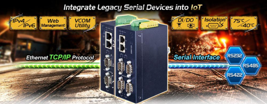 Eth2Ser-IC seriell portserver är speciellt utformad för att konvertera RS232, RS422 eller RS485 seriell kommunikation till Industriellt Fast Ethernet-nätverk för att expandera nätverksavståndet effektivt och billigt. Det finns två 10 / 100Base-TX RJ45-portar tillgängliga i Eth2Ser IC för dina nätverksbehov. Eth2Ser-IC är en tidsbesparande och kostnadseffektiv lösning för användare och systemintegratörer för att snabbt omvandla sina seriella enheter till Ethernet-nätverket utan att behöva ersätta de befintliga seriella enheter och mjukvarusystem.