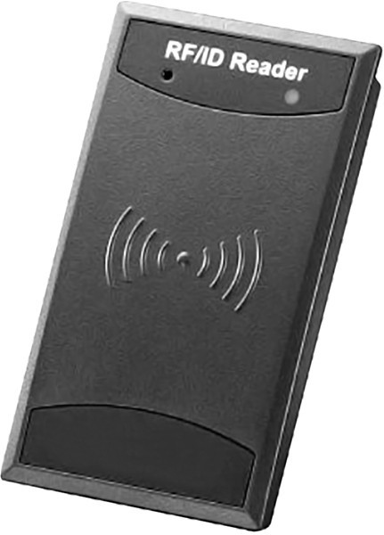 RFID läser EM 125kHz. UID är 40 bitar, 10 siffror ASCII. RS232, Wiegand 26 bit, LED, summer. Vattentät. 12VDC.