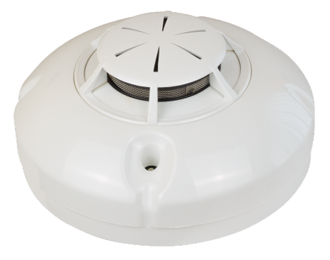 Brandvarnare med en diameter på 15 meter, vit, 10 - 30 VDC. Med reläutgång för larmenhet