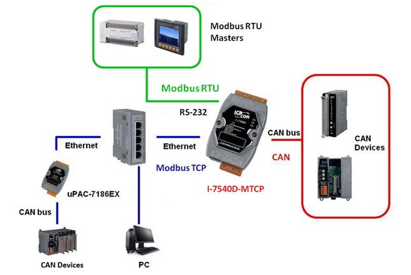 Ethernet till CAN-enhets server. CAN till Ethernet Gateway. Med 1 x CAN, RS232 och RS485.