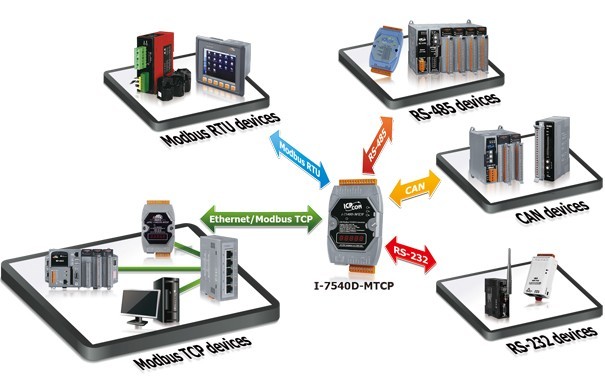 Internetkommunikationskontroll med 1 x CAN-buss, 1 x RS-232, 1 x RS-485 och 1 x Ethernet