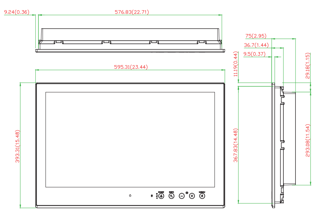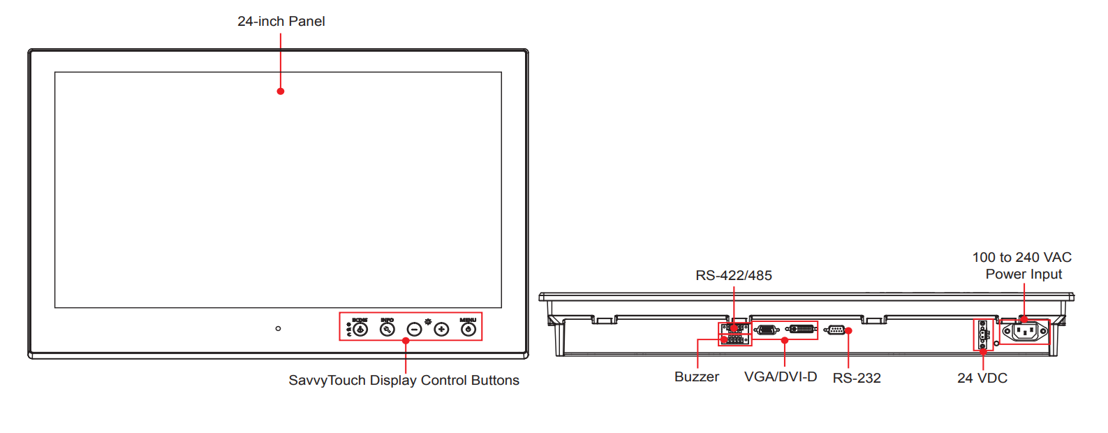 24-tums LCD-skärm med 300-nits, damm och vattentät IP54, IP20 bak, dubbla AC / DC-ingångar,