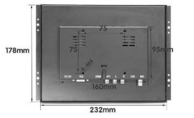 12.1" Monitor TFT-LCD, resistiv touch, IP65 framsida, VGA, DVI-D, DisplayPort, 9~48VDC