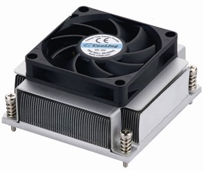 Aktiv kylare för Socket 1366, i aluminium. Aktiva kylare har en fläkt monterad och kräver därför en mindre kylprofil än en passiv kylare. Bättre kylning kan uppnås med en fläkt än med en passiv kylare.