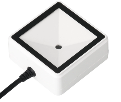 1D och 2D streckkodsläsare, USB HID eller COM-port, stationär med fot, automatisk objektdetektering