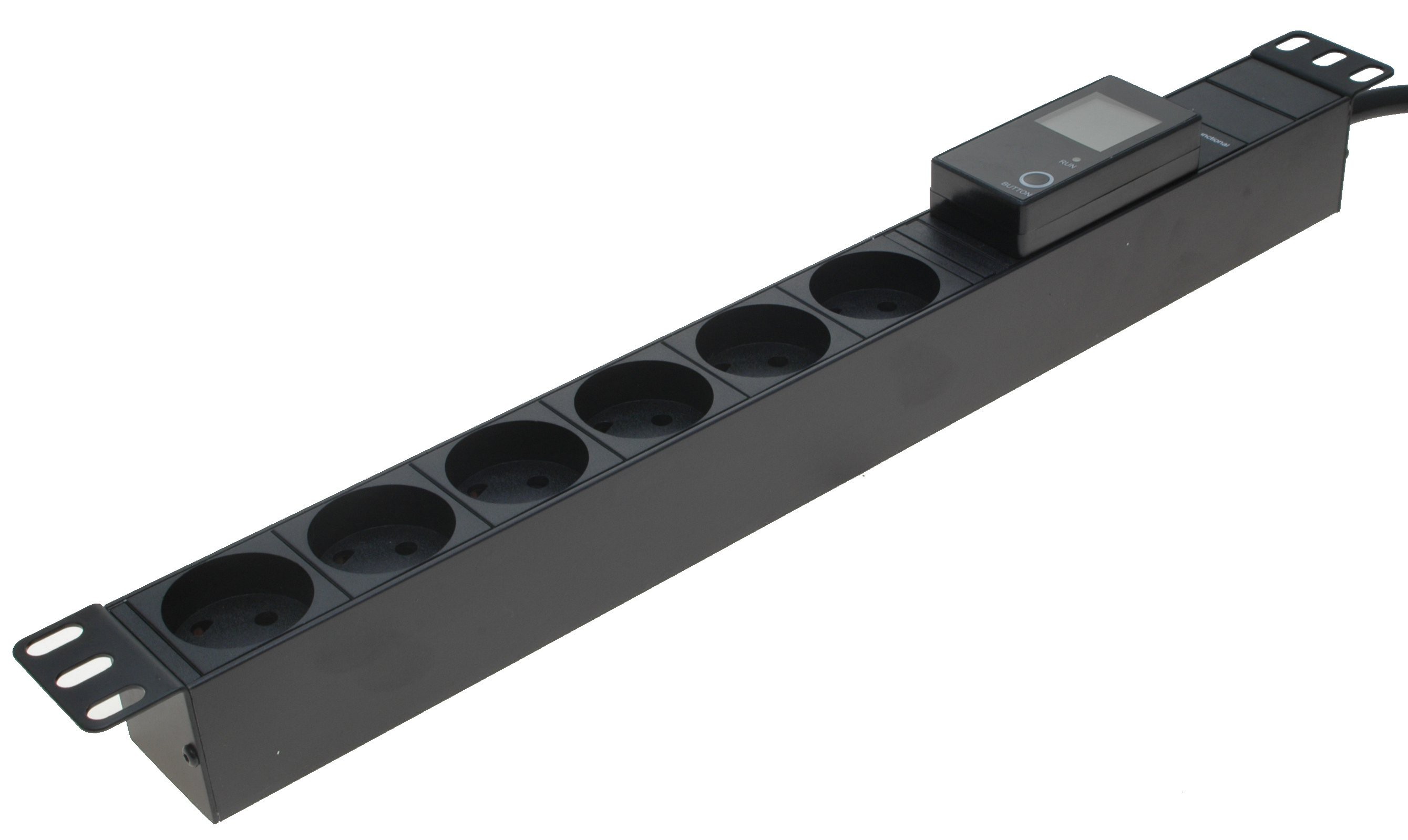 Grenuttak, 19" med 6 x DK uttag med jord, har strömmätare