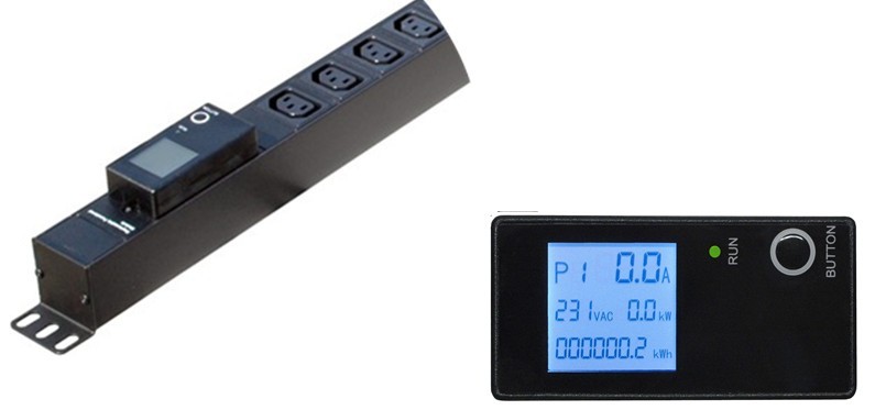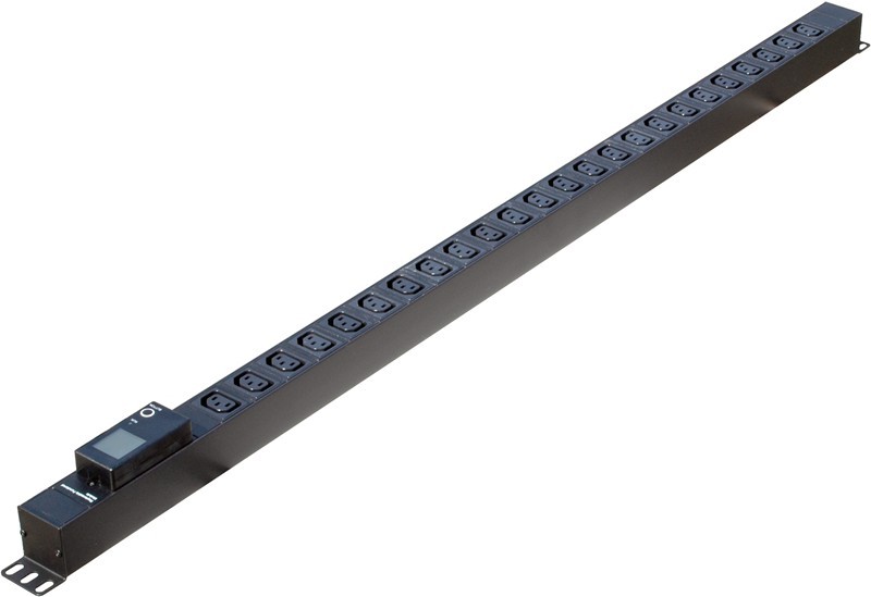 Strömställare för 19 "rackskåp, 24 x IEC C-13 kvinnlig kontakt, 16A CEE hane kontakt, LCD-skärm för spänning, effekt, kWh, sv