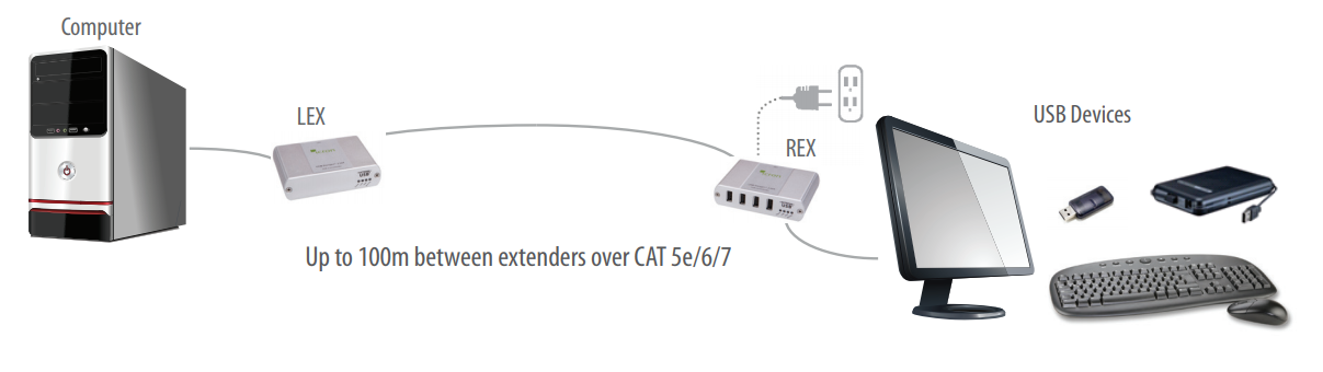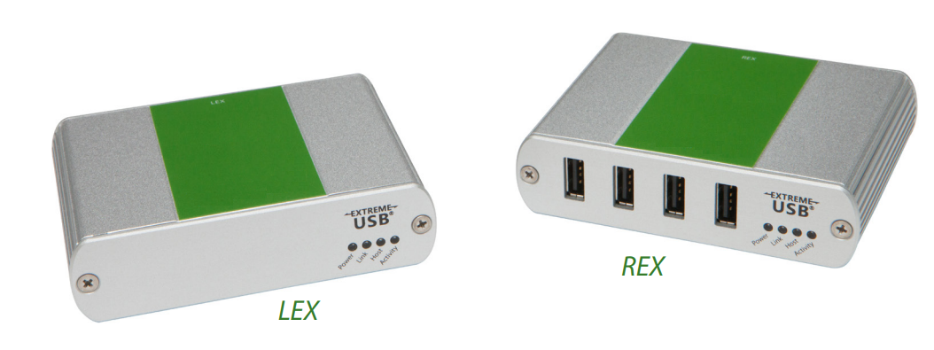 1 x RJ45 (LEX-enhet) till 4 x USB-A (REX-enhet)