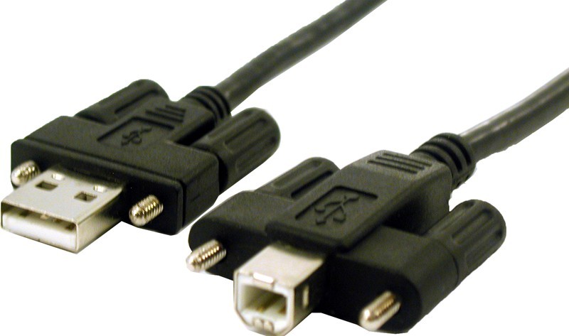 USB 2.0-kabel, A hane - B hane med fingerskruvar för åtdragning, svart, 2 m