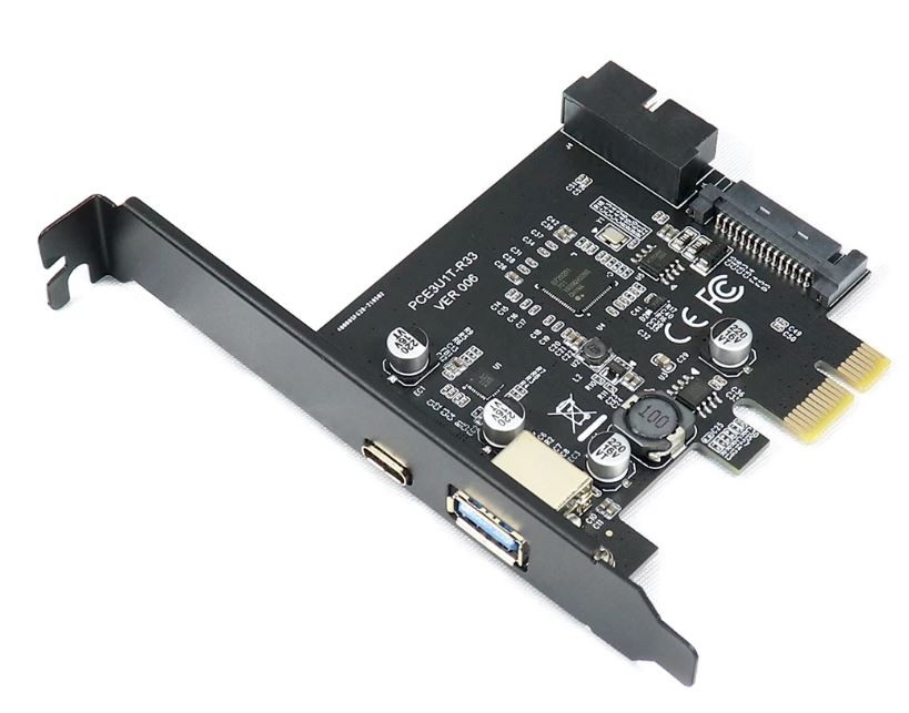 USB 3.1 Gen 1 PCI Express X1 expansionskort, USB-C, USB-A, 19-stifts främre USB, 5 Gb/s