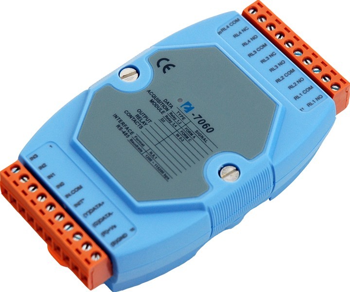 RS485 I/O-modul med 4 digitala ingångar och 5 reläutgångar