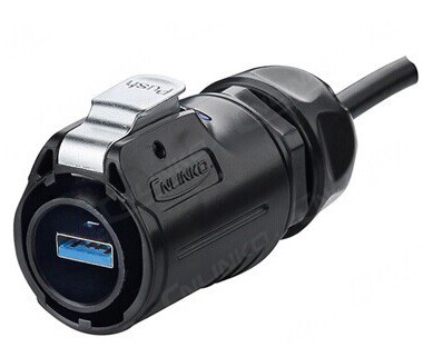 Vattentät USB 3.0 honkontakt med fläns för chassi, IP68 tät med lock, USB hona/hona