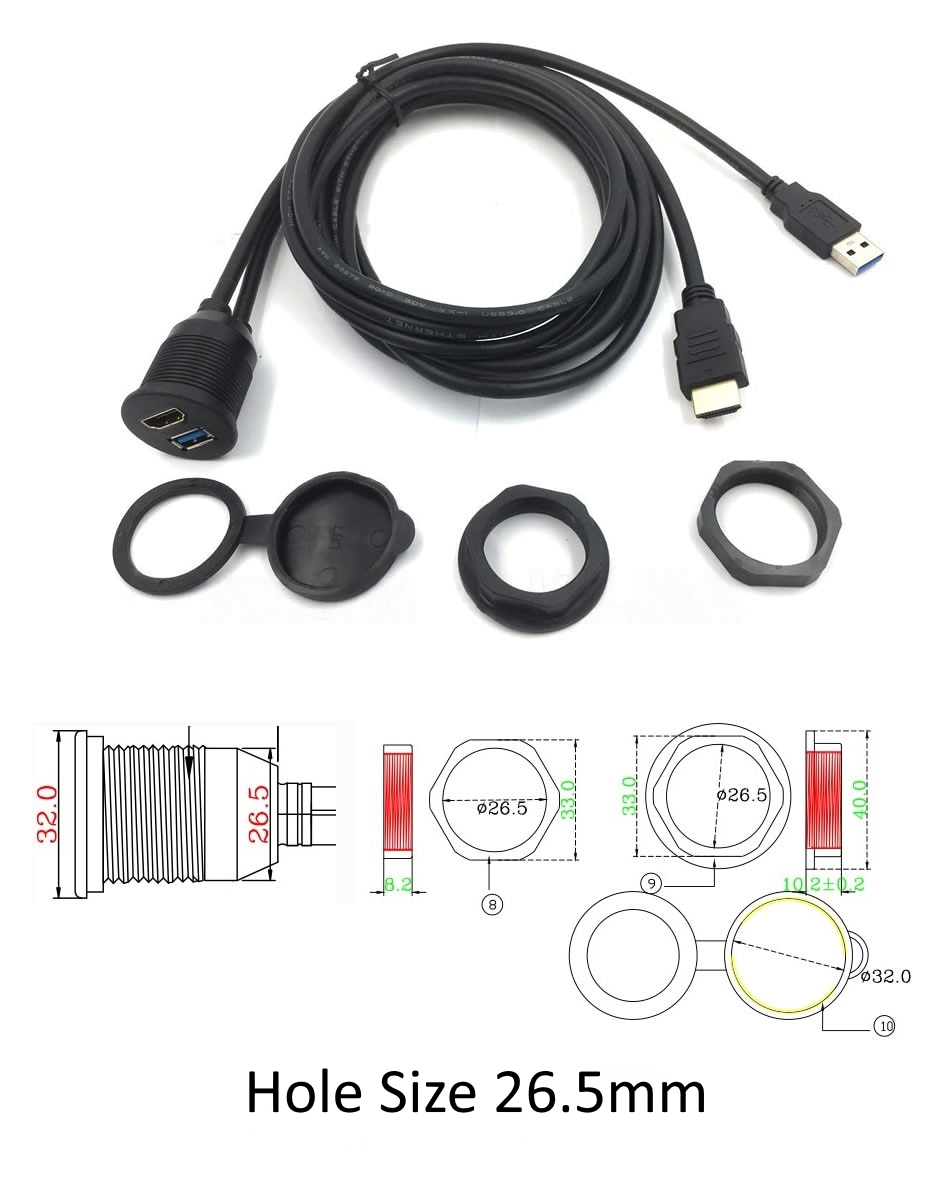 HDMI och USB 3.0 monteringspanelförlängare, kan monteras så att HDMI & USB-ingångar är lättare att komma åt, ett skyddande hölje kan även placeras i änden av kabeln för att göra den vattentät. Så det skulle vara möjligt att använda den utomhus för små stormar eller små droppar.