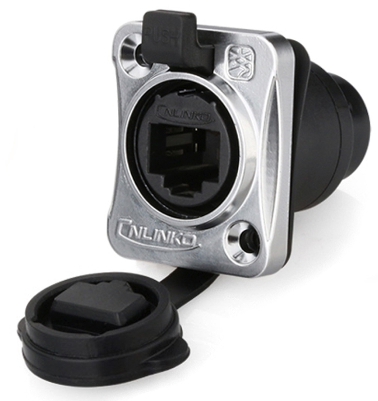 Vattentät IP65 RJ45-kontakt (hane) för UTP-kabel, metallmantel. Kabelkontakt som passar RJ45WP-F chassikontakt.