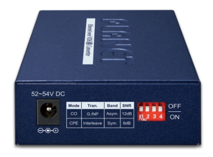 DIP-switch: VDSL-anslutning, den ena måste vara inställd på CPE och den andra på CO.