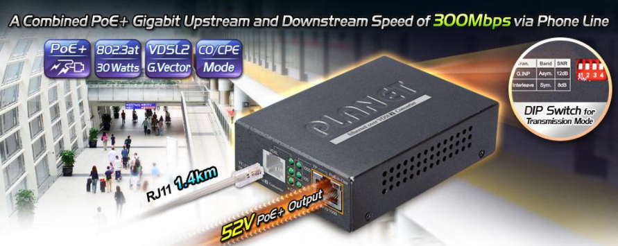 Upp till 1,4 km över t.ex. gammal telefonkabel med 2 VDSL-moduler