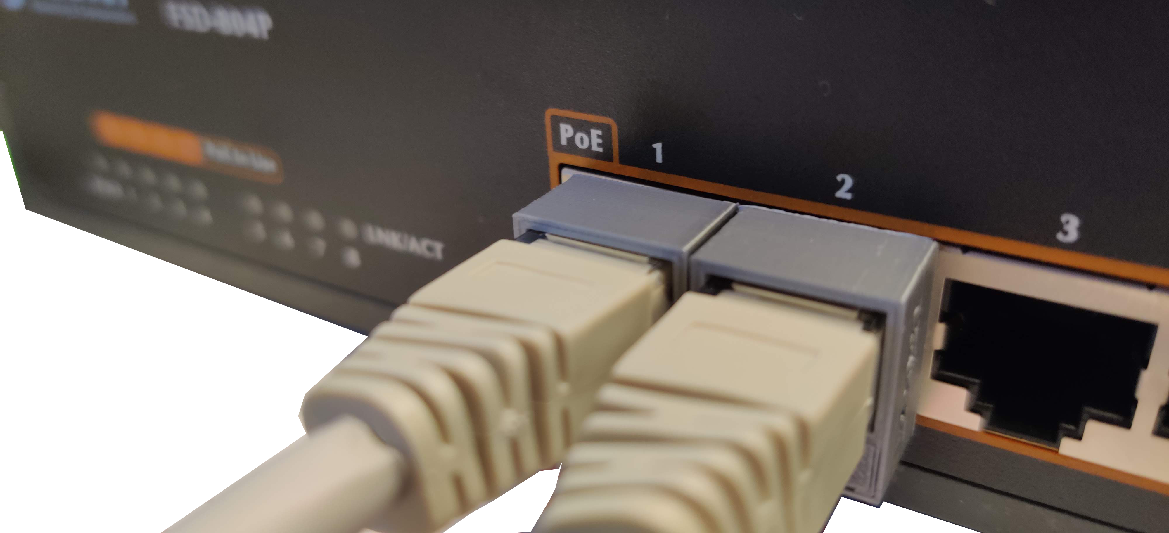 Detta RJ45 lås Kan användas för att stoppa oavsiktlig borttagning av cabels från en switch eller liknande.