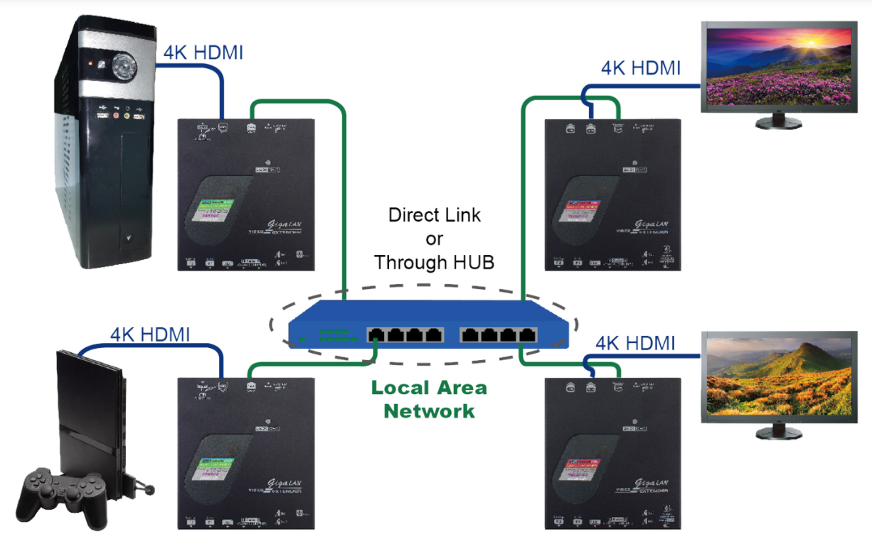 4K - KVM-förlängare av Gigabit TCP/IP eller punkt till punkt RJ45 100 meter, kan HDMI + USB för pekskärmen . Kan drivas med PoE