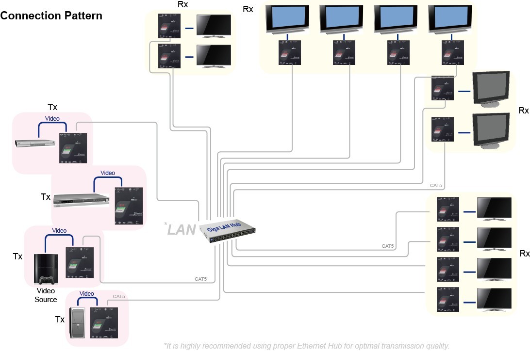 Sändare 1 till 1 eller 1 till 8 x 16 videovägg