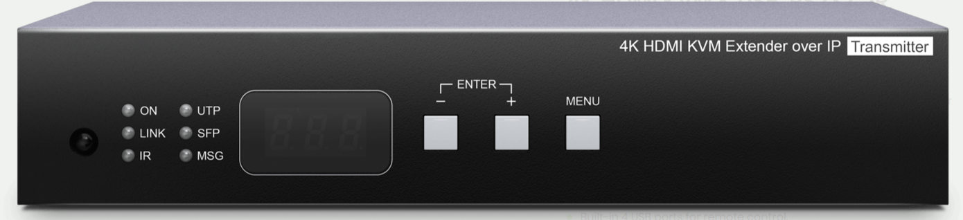 4K@30Hz 4:4:4 HDMI KVM Extender RX över IP / punkt till punkt med RJ45 (150m) eller fiber (60km). 4 x USB.
