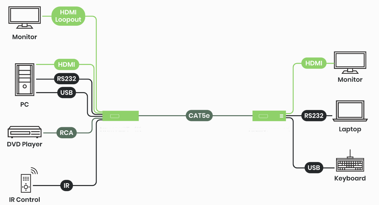 4K30 HDMI-mottagare Point to Point med RJ45 upp till 150 meter