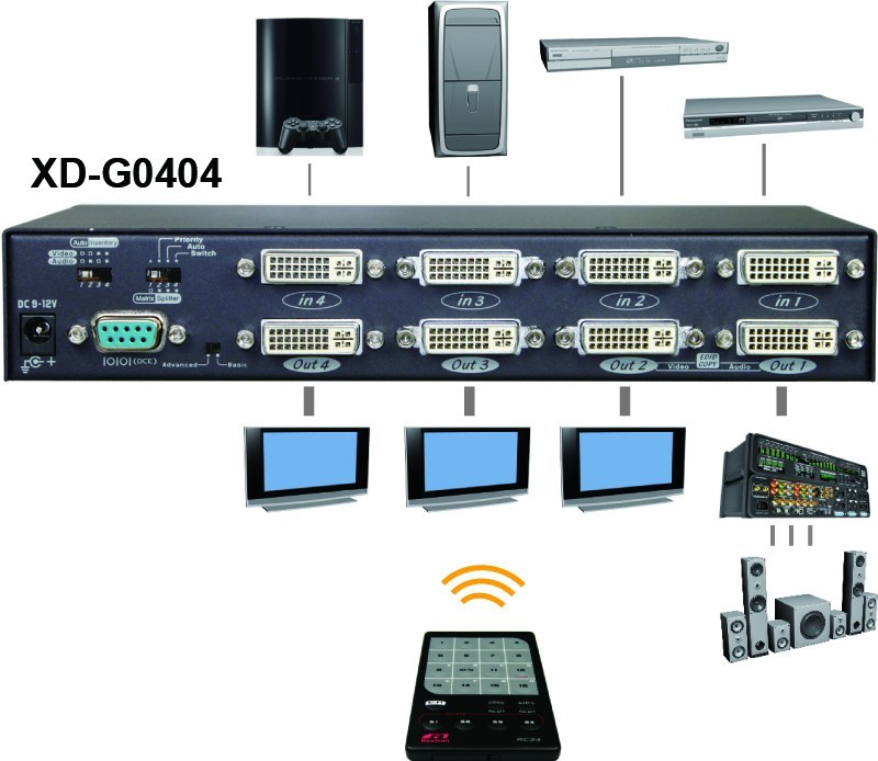 XD-G0204, DVI Matrix med GUI, IR, RS232 & EGO Funktion (2-in/4-out)