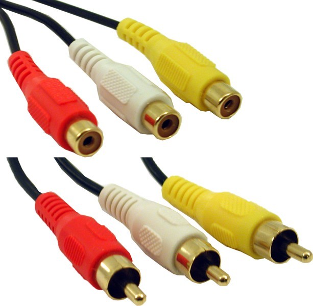 3 -vägs video / ljudkabel förlängning , används vanligtvis för att förlänga ett samband mellan , till exempel. komposit videoutgång på en kamera och en videoingång på en DVR-kort