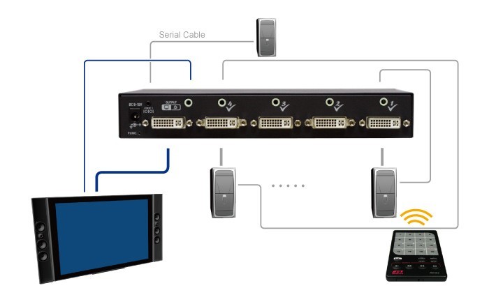 VSDA-401, 4-Ports DVI Switch med Audio & RS232