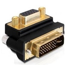 DVI-I vinklad adapter 24 + 5 till VGA DB15HD hona, 90° rätvinklig. (DVI-A till VGA)